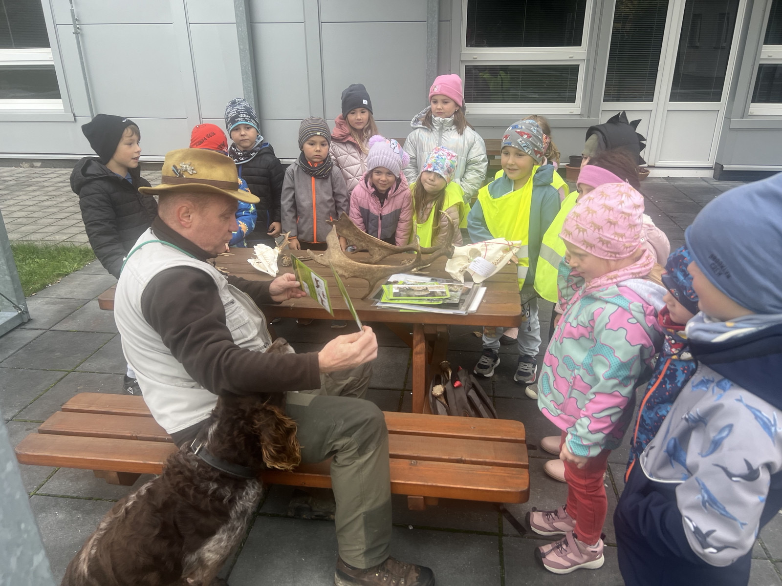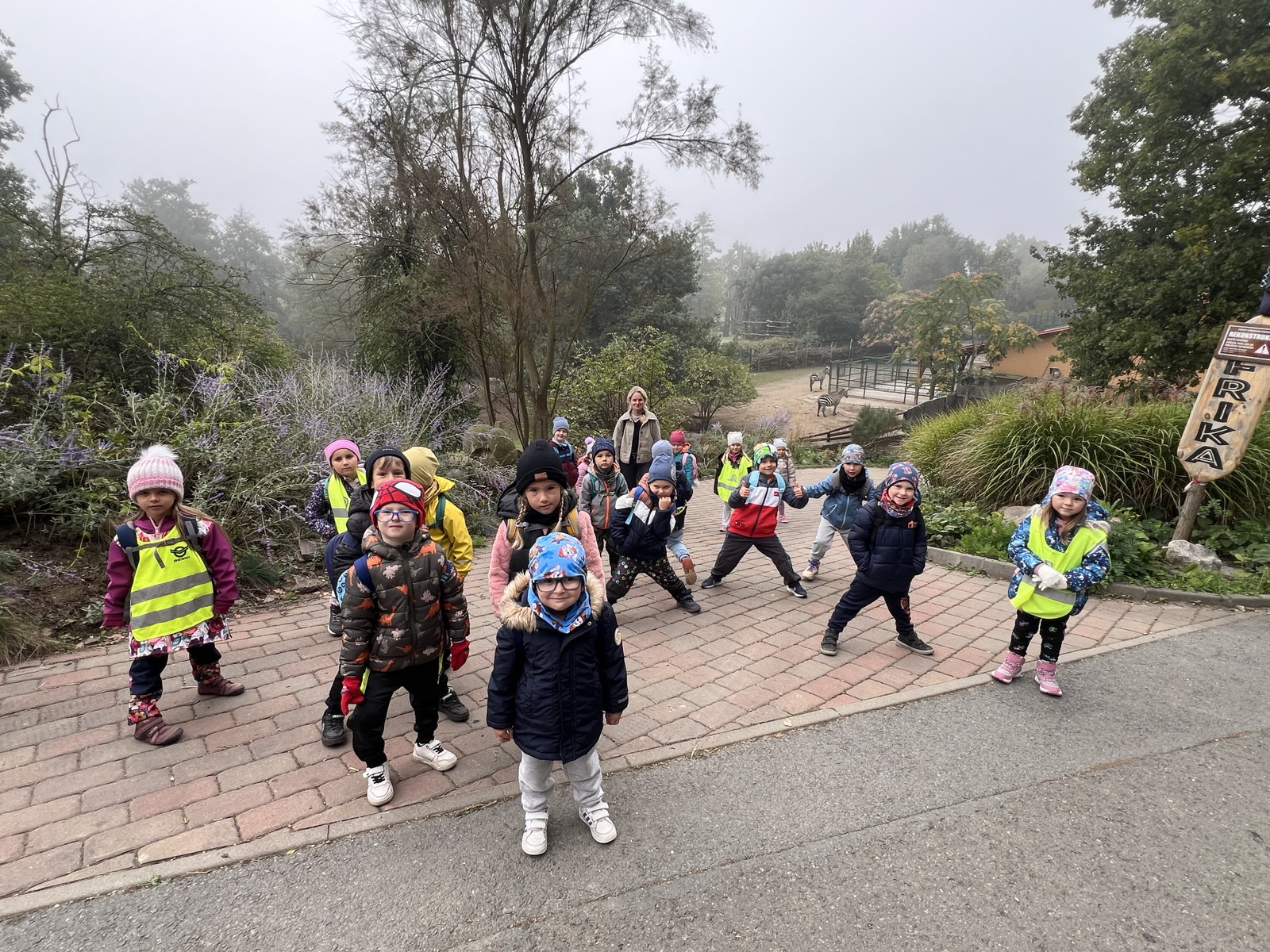 V říjnu se děti vydaly za poznáváním světa zvířat. Želvičky se vydaly autobusem do Merklína na naučnou stezku Bijadla, kde pozorovaly zvířátka a užily si pobyt na čerstvém vzduchu. Chobotničky, Piráti a Plavčíci navštívili zoo v Plzni, kde se starší děti zúčastnily i vzdělávacího programu Šelmy, během kterého měly možnost sledovat i krmení lvů a lvic. Piráti také nezapomněli na naše okolí a vydali se za sběrem hub na dopolední vycházku po Martinské stěně. Také nás ve školce navštívila vzácná návštěva – pan myslivec Krákora se svým věrným psím kamarádem Argem. Děti si se zájmem prohlédly myslivecké trofeje a dozvěděly se, co všechno musí takový lovecký pes umět. Abychom panu myslivci poděkovali za jeho čas, pilně jsme na školní zahradě nasbírali kaštany, které pak putovaly přímo zvířátkům do lesa jako zimní přilepšení. Nechyběla ani kultura – v „K“ jsme zhlédli divadelní představení Divadla Kuba s pohádkou Není drak jako drak, která děti pobavila i poučila. Předškoláci navíc začali pravidelně navštěvovat městskou knihovnu, kde se seznamují se světem knih a příběhů. První velkou akcí, na kterou jsme pozvali i rodiče, bylo naše podzimní Dýňování na zahradě. Pro děti byla připravena zábavná stanoviště s úkoly a odpoledne jsme zakončili v té nejlepší atmosféře – společným opékáním buřtů u ohně. Bylo krásné vidět všechny pohromadě. Přelom října a listopadu patřil ve všech třídách Halloweenu. Školka se zaplnila pavouky, čarodějnicemi a jinými strašidly. V maskách a kostýmech jsme tancovali, hodovali a užívali si pořádnou strašidelnou párty, která k tomuto období neodmyslitelně patří.