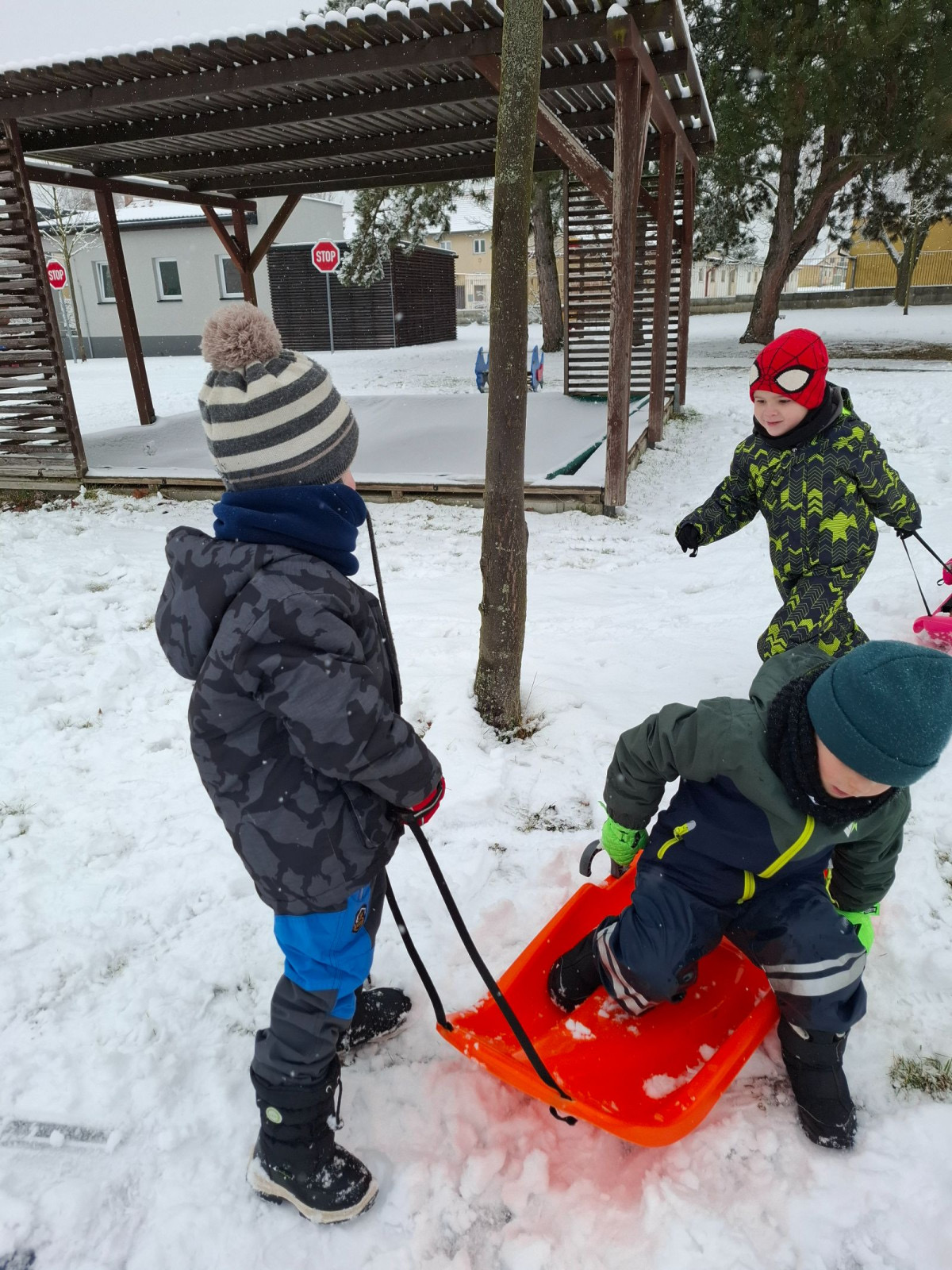 Leden u nás ve školce? To byl měsíc, kdy se z obyčejných dnů stala pohádka – a to hned několikrát! Hned po návratu z vánočních prázdnin čekalo na děti ve třídách Chobotniček a Pirátů velké překvapení. Ježíšek na ně totiž nezapomněl ani ve školce! Pod stromečkem se objevila nadílka, která rozzářila oči. A pak to přišlo. Konečně! První sníh! Jakmile se vločky začaly snášet k zemi, bylo jasno – celé okolí se proměnilo v zimní království. Stavěli jsme sněhuláky, koulovali se, bobovali, zkoumali, jestli je sníh opravdu tak studený, jak se říká. Byl. Ale to nám vůbec nevadilo! Mrazivé počasí nám nabídlo skvělou příležitost k experimentování se sněhem a ledem – děti tvořily ledové ozdoby i hrníčky, vyráběly sladké nanuky a sněhovou peřinu rozzářily malbou vodovkami. Naši předškoláci nezaháleli ani v novém roce a odvážně se pustili do předplaveckého kurzu v bazénu v Rokycanech. Ve vodě to cákalo radostí. Někteří překonali první obavy, jiní pilovali své plavecké dovednosti a všichni si zaslouží obrovskou pochvalu. Možná nám tu roste budoucí olympionik – kdo ví? Leden ale nebyl jen o dětech. Mysleli jsme i na rodiče. Uspořádali jsme Kavárnu po škole, kde se u šálku kávy setkaly se školní psycholožkou. Povídali jsme si o školní zralosti a o tom, jak dětem co nejvíce usnadnit nástup do 1. třídy základní školy. A aby toho nebylo málo, všechny děti vyrazily na výlet do Plzně do oblíbeného Divadlo Alfa. Představení Jak si Míša hledal kamaráda nás vtáhlo do světa přátelství, odvahy a hledání toho pravého kamaráda. Leden byl zkrátka měsíc plný radosti, nových začátků, sněhových koulí, prvních temp i divadelních zážitků. A pokud bude celý nový rok takový, máme se opravdu na co těšit!